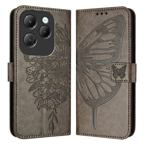 Funda de Cuero para Infinix Hot 40 y Hot 40 Pro con Mariposa en Relieve (Gris)
