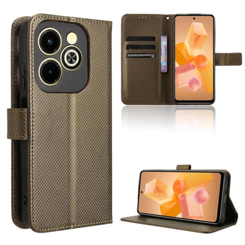 Funda de Cuero para Infinix Hot 40I 4G con Textura de Diamante (Marrón)