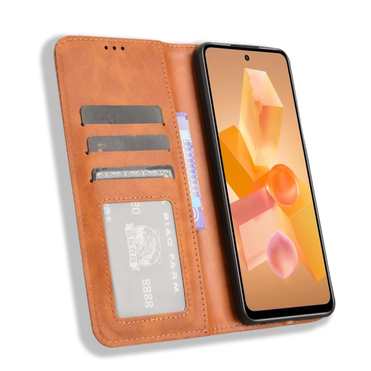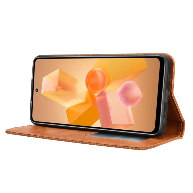 Funda para Infinix Hot 40I 4G de Cuero con Textura Retro y Hebilla Magnética (Marrón)