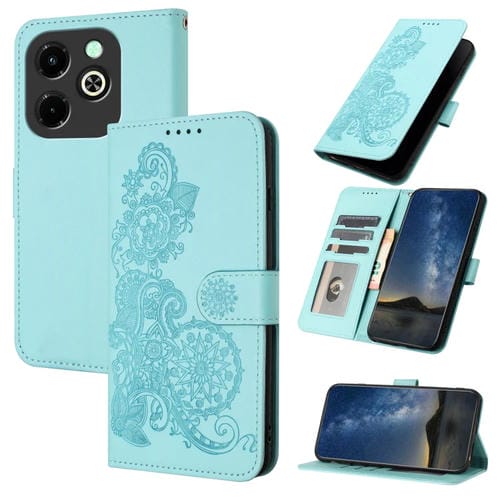 Funda de Cuero para Infinix Hot 40I Datura Flower con Tapa en Relieve (Azul Claro)