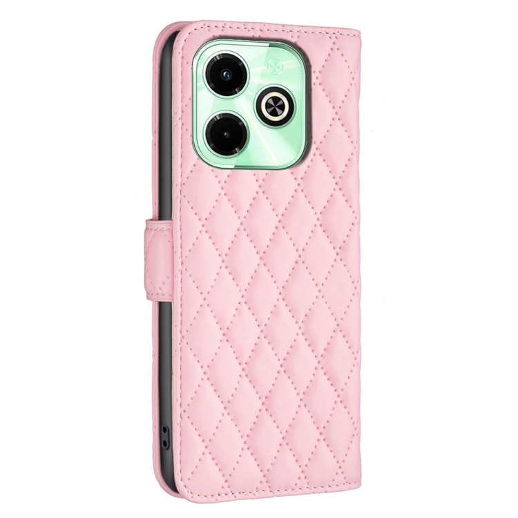 Funda de Cuero con Tapa para Infinix Hot 40I Diamond Lattice (Rosa)