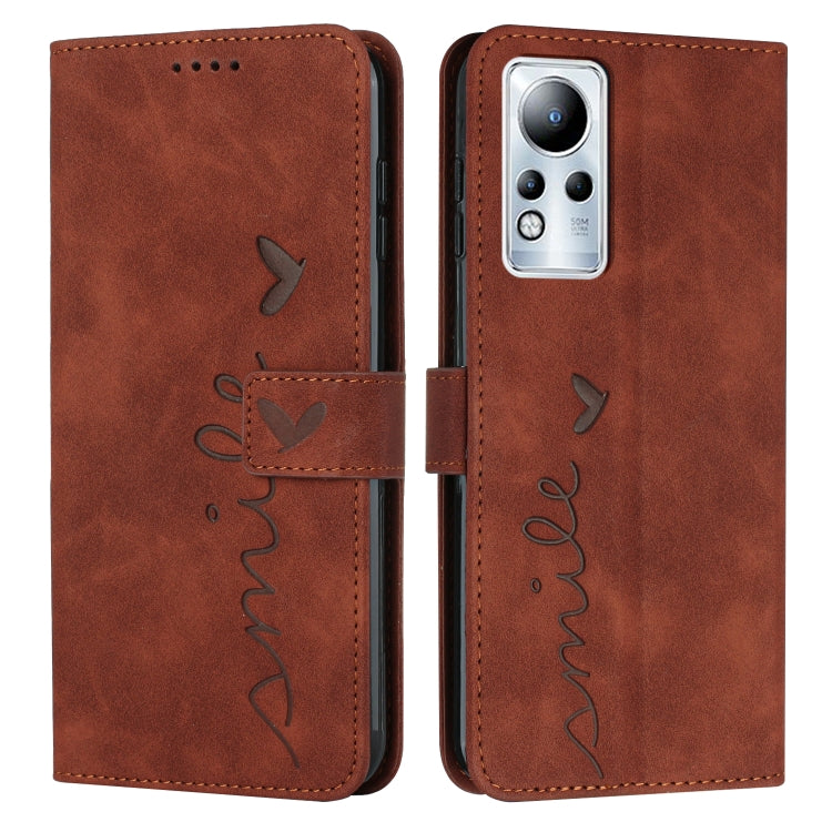 Estuche de Cuero para Infinix Nota 11 con Patrón de Corazón (Marrón)