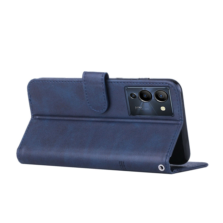 Funda de Cuero para Infinix Note 12 G96 con Costura y Hebilla Textura de Pantorrilla (Azul)