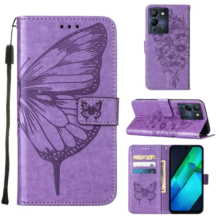 Estuche para Teléfono Infinix Note 12 G96 Cuero con Tapa de Mariposa en Relieve (Púrpura)