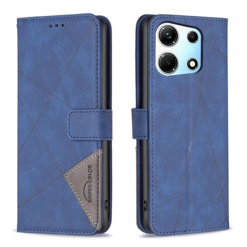 Funda para Infinix Note 30 5G de Cuero con Textura de Rombo y Hebilla Magnética (Azul)