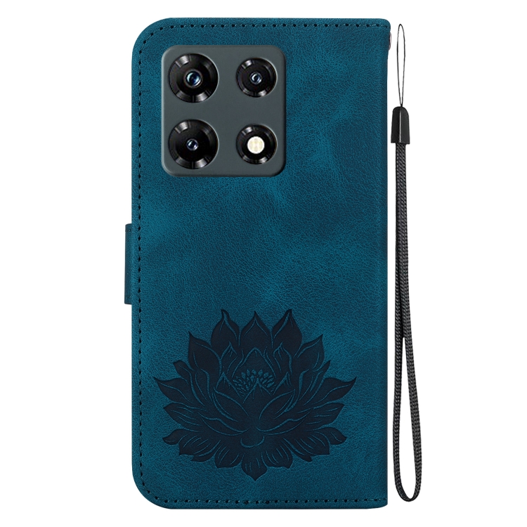 Funda de Cuero para Infinix Note 30 Pro con Relieve de Loto (Azul Oscuro)
