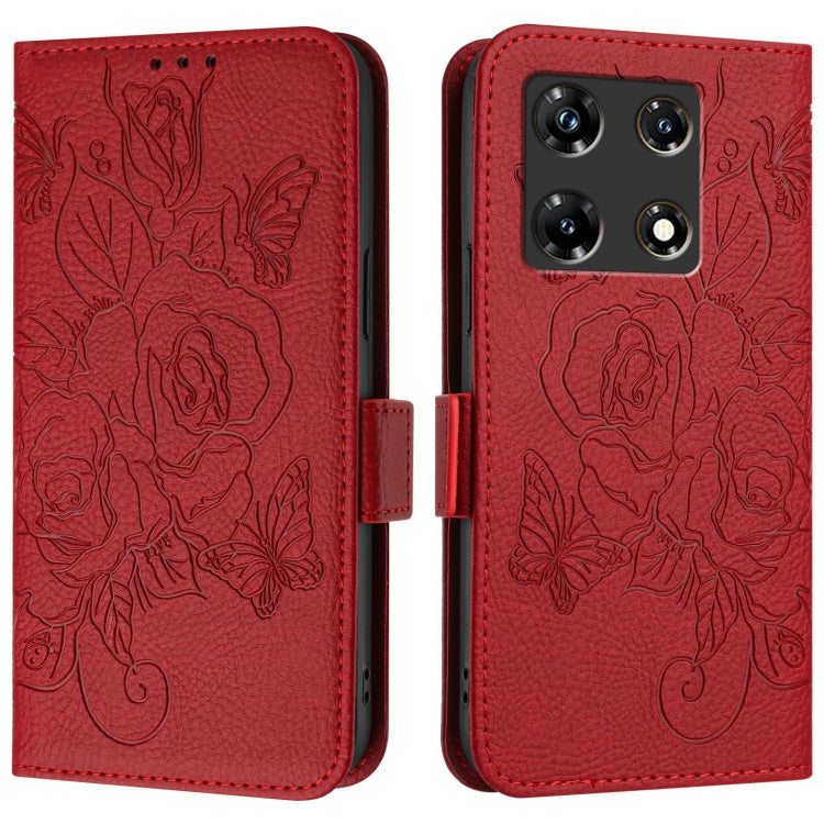 Funda para Teléfono Infinix Note 30 Pro y Note 30 5G Cuero Antirrobo RFID con Relieve (Rojo)