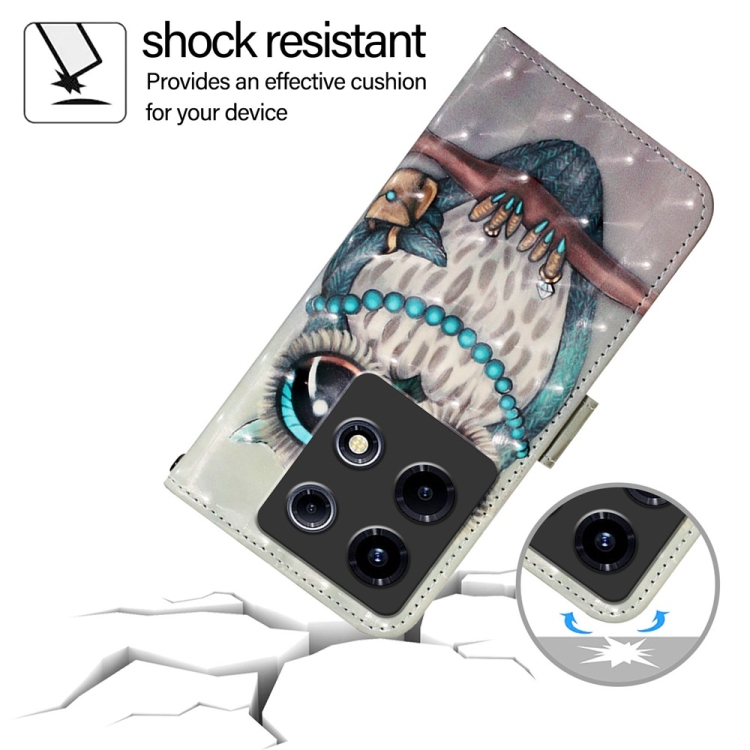 Funda de Cuero con Tapa Horizontal para Infinix Note 30 Vip Pintura 3D (Búho Gris)