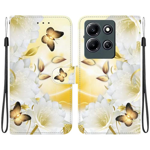 Funda de Cuero para Infinix Note 30I con Dibujo Coloreado y Textura de Cristal (Epiphyllum Mariposa Dorada)