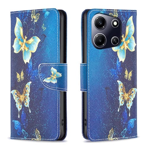 Funda de Cuero para Infinix Note 30I con Patrón de Dibujo Coloreado (Mariposa Dorada)