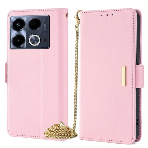 Funda de Cuero para Infinix Note 40 4G con Cadena Cruzada (Rosa)