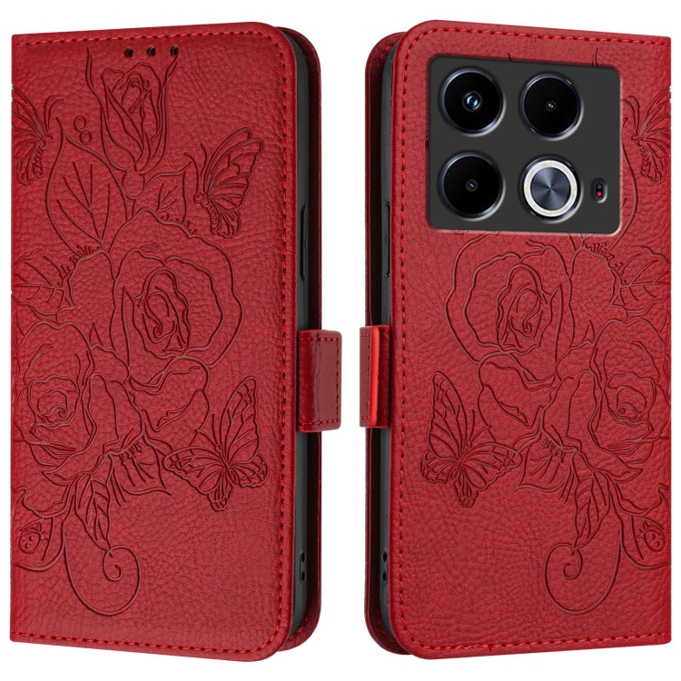 Funda de Cuero Antirrobo RFID para Infinix Note 40 5G con Relieve (Rojo)