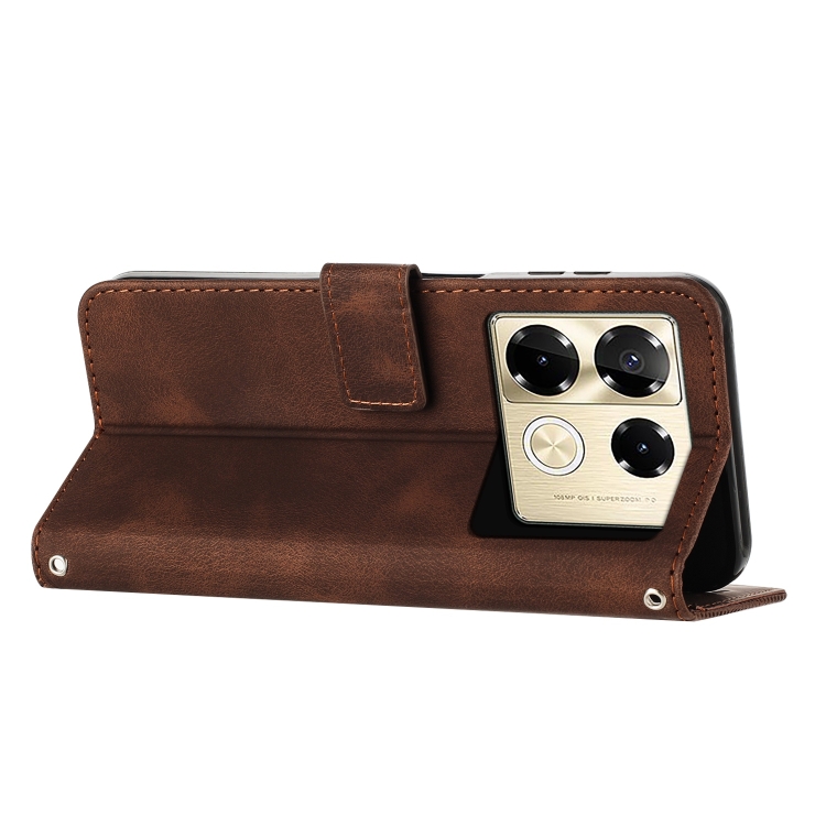 Funda de Cuero para Infinix Note 40 Pro 4G / 5G Dream Triangle con Cordón (Marrón)