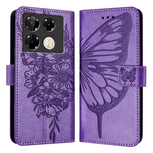 Funda de Cuero para Infinix Note 40 Pro 4G con Mariposa en Relieve (Púrpura Claro)