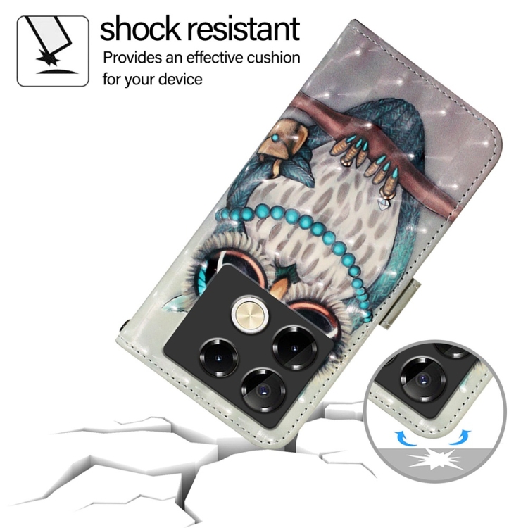 Funda para Teléfono Infinix Note 40 Pro 4G de Cuero con Tapa Horizontal y Pintura 3D (Búho Gris)