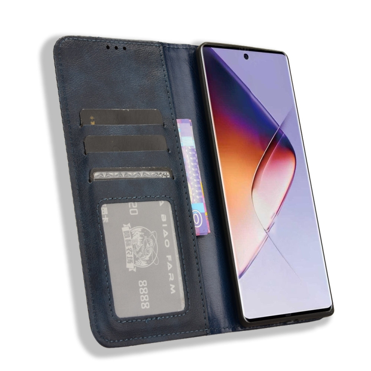 Funda para Infinix Note 40 Pro 4G de Cuero con Textura Retro y Hebilla Magnética (Azul)