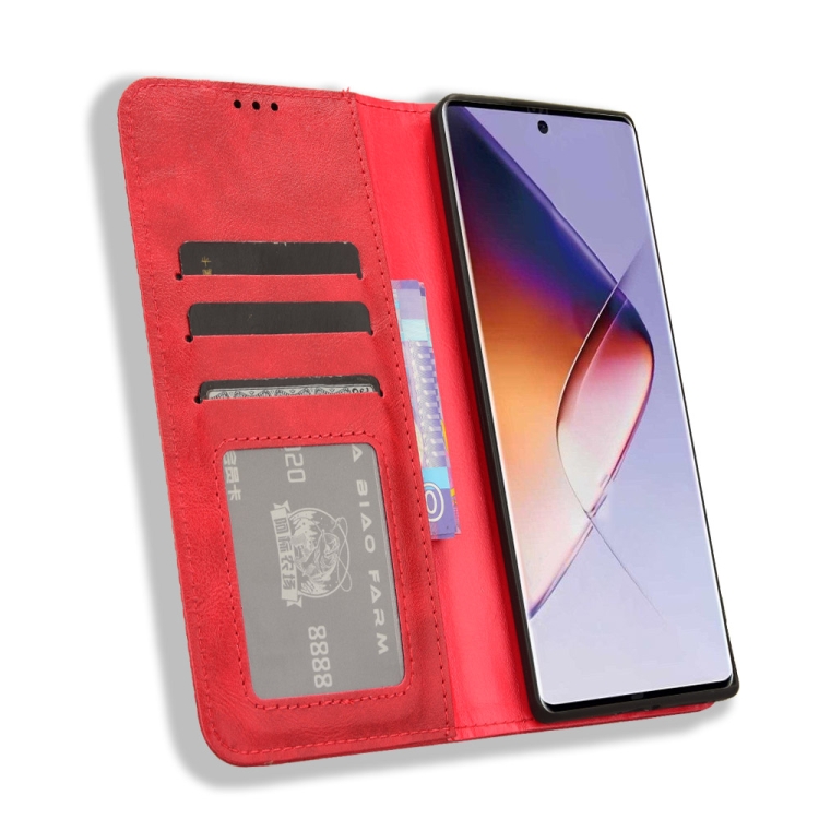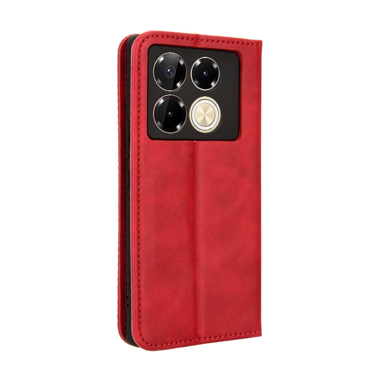 Funda para Infinix Note 40 Pro 4G de Cuero con Textura Retro y Hebilla Magnética (Rojo)