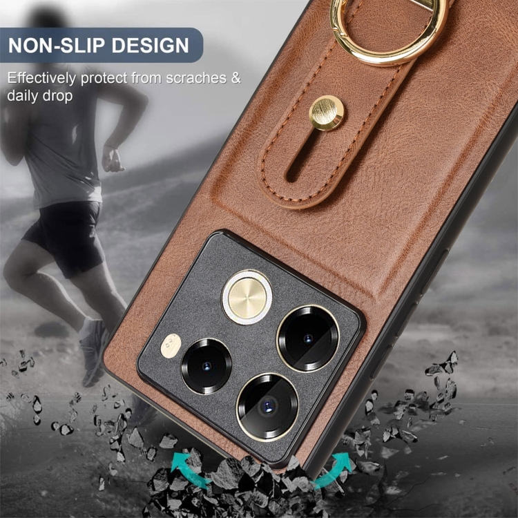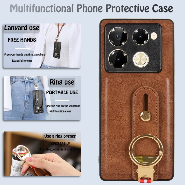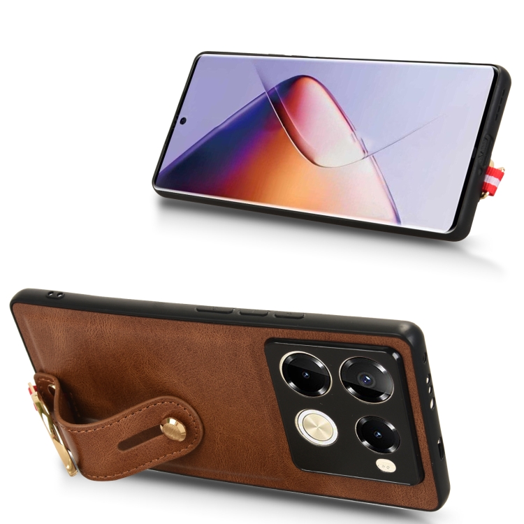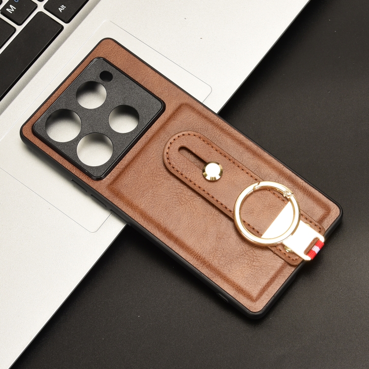 Funda Trasera de Cuero para Infinix Note 40 Pro 4G X6850 con Pulsera (Marrón)