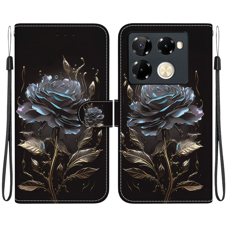 Funda de Cuero para Infinix Note 40 Pro + 5G con Dibujo Coloreado y Textura de Cristal (Rosa Negra)