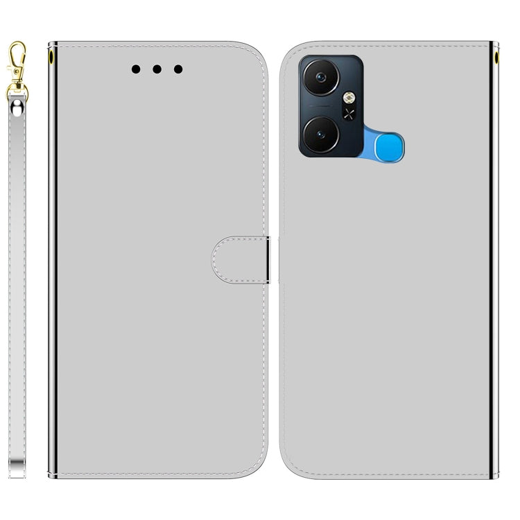 Estuche para Infinix Smart 6 Plus de Cuero con Superficie de Espejo Imitado (Plata)