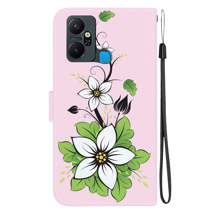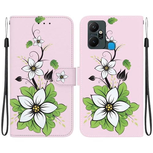 Funda de Cuero para Infinix Smart 6 Plus con Dibujo Coloreado y Textura de Cristal (Lirio)