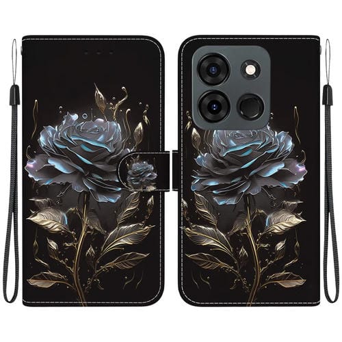 Funda de Cuero para Infinix Smart 7 con Dibujo Coloreado y Textura de Cristal Indio (Rosa Negra)