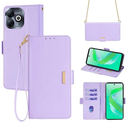 Funda de Cuero para Infinix Smart 8 4G con Cadena Cruzada (Púrpura)
