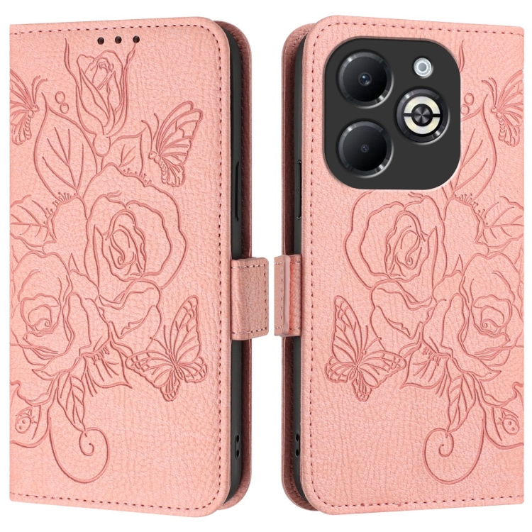 Funda de Cuero Antirrobo RFID para Infinix Smart 8 Plus 8 Pro T8 Plus con Relieve (Rosa)