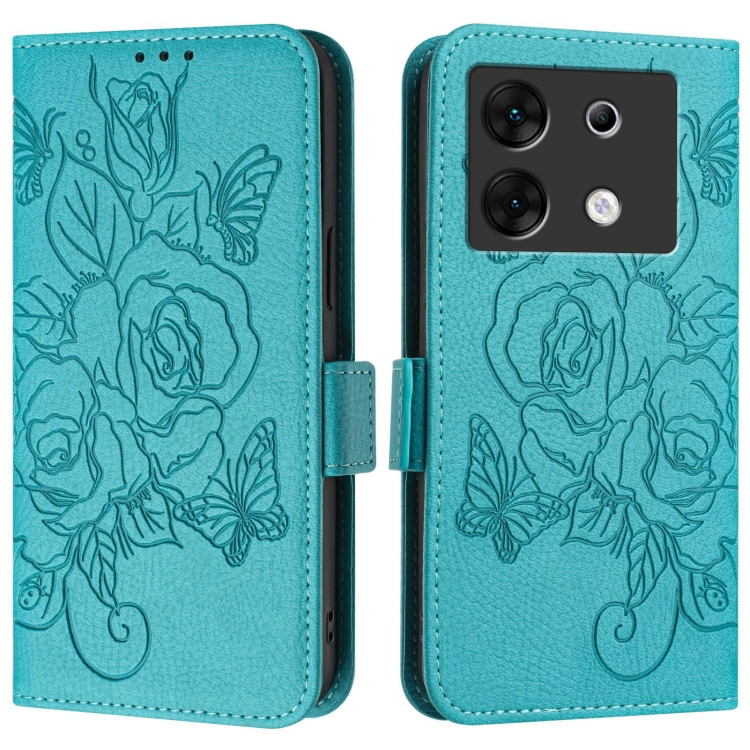 Funda de Cuero Antirrobo RFID para Infinix Zero 30 5G con Relieve (Azul Claro)