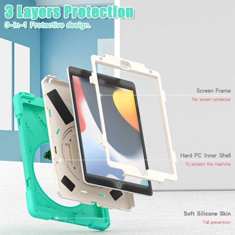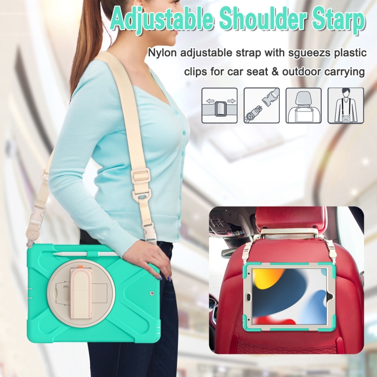 Funda Protectora Silicona PC para iPad 10.2 (2021/2020/2019) con Soporte y Correa (Verde Menta)