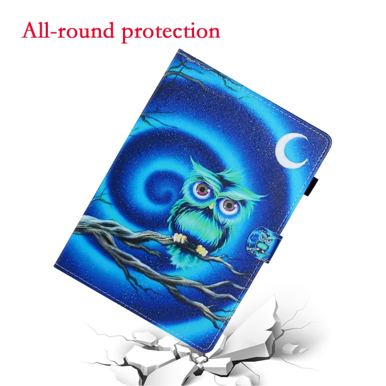 Funda de Cuero Inteligente para iPad Pro 11 (2024) con Costuras y Dibujos a Color (Moon Owl)