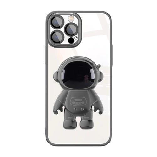 For iPhone 11 Electroplating PC Astronaut Holder Phone Case with Lens Film(Black)