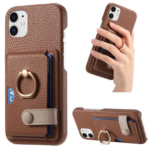 Funda para Teléfono iPhone 11 Litchi Leather Oil Edge Ring Card Back (Marrón)