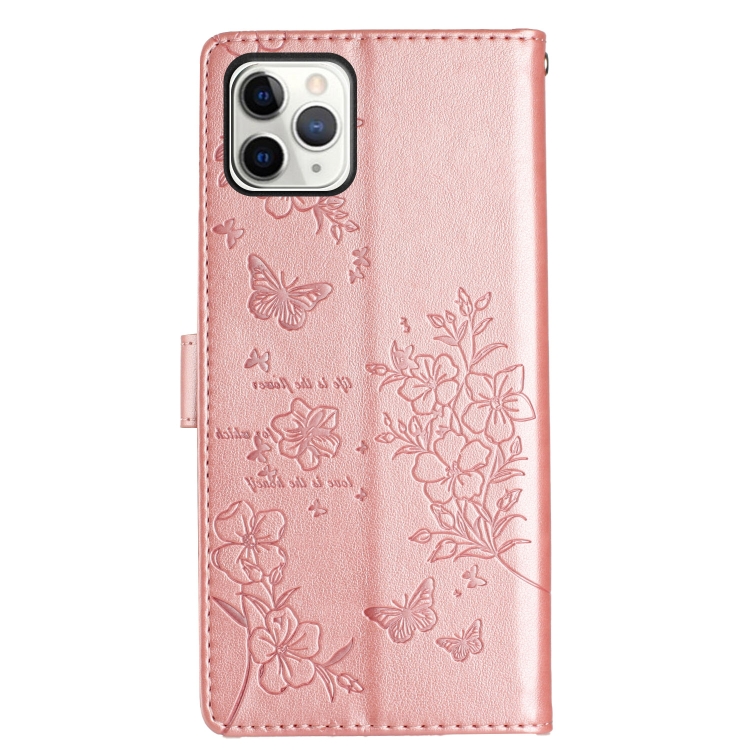 Funda de Cuero para iPhone 11 Pro Butterfly Love Flower En Relieve (Oro Rosa)