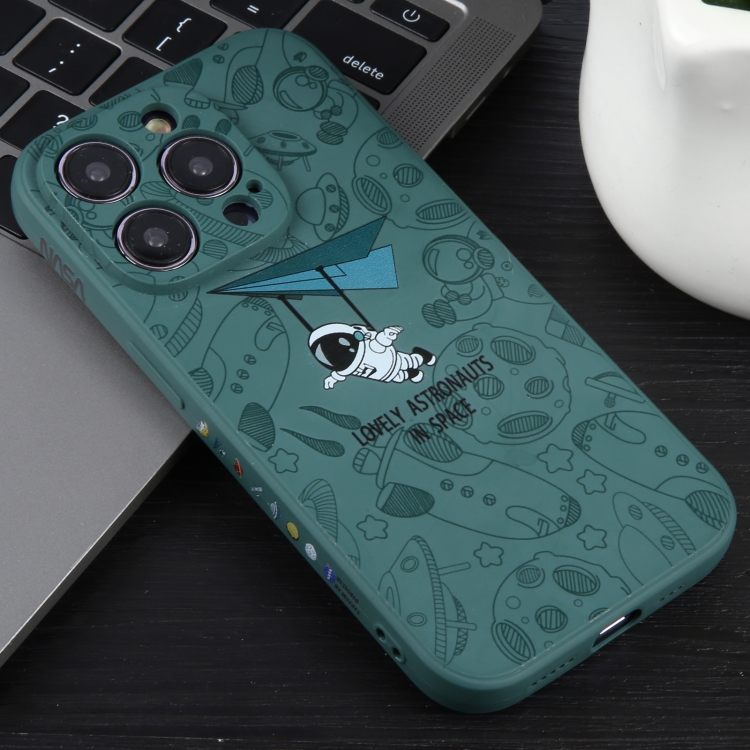 Funda para Teléfono iPhone 11 Pro Silicona Borde Recto Patrón Astronauta (Green)