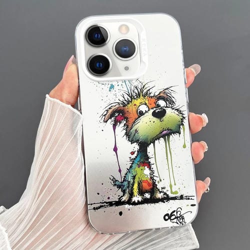 For iPhone 11 Pro Max Phone Case IMD Animal Graffiti TPU+PC Double-sided (Orange Green Melt Dog)