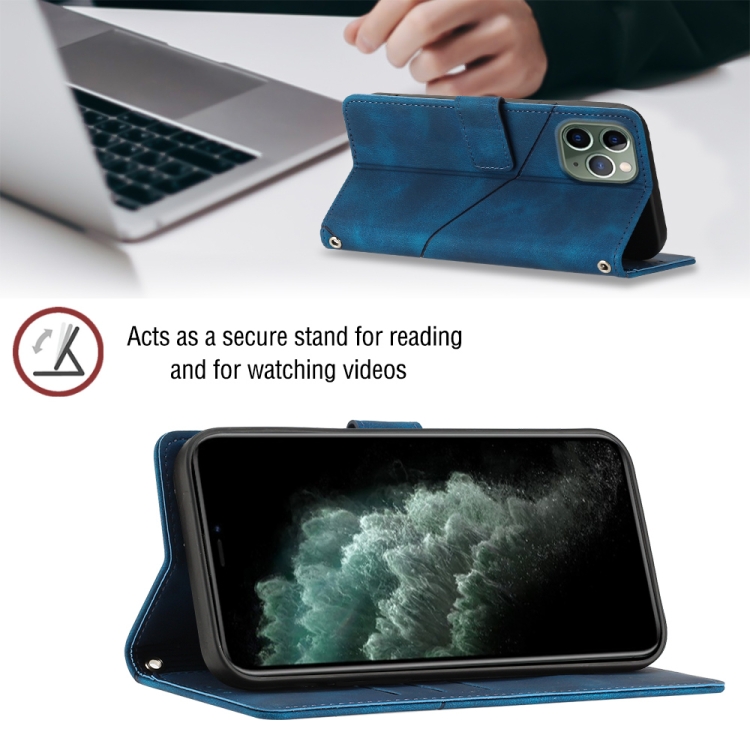 Estuche para Teléfono iPhone 11 Pro Max Skin-Feel Cuero En Relieve (Azul)