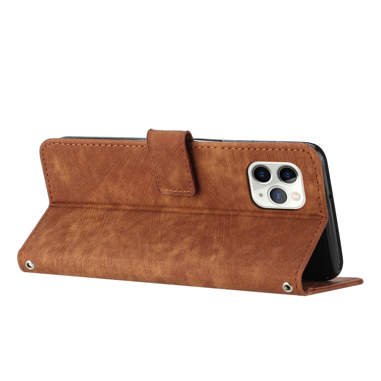 Funda para iPhone 11 Pro Skin Feel Stripe Pattern de Cuero con Cordón (Marrón)