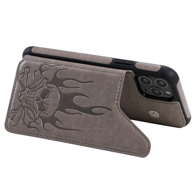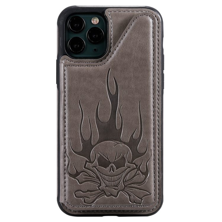 Estuche Protector para iPhone 11 Pro Skull Head Embossing a Prueba de Golpes con Soporte y Ranuras para Tarjetas (Gris)