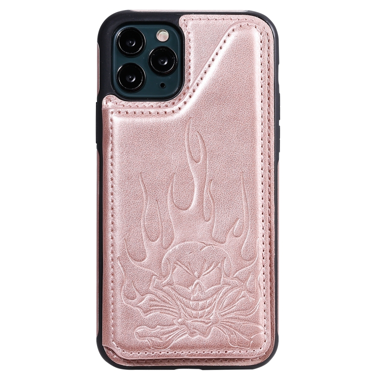 Estuche Protector para iPhone 11 Pro Skull Head Embossing a Prueba de Golpes con Soporte y Ranuras para Tarjetas (Oro Rosa)