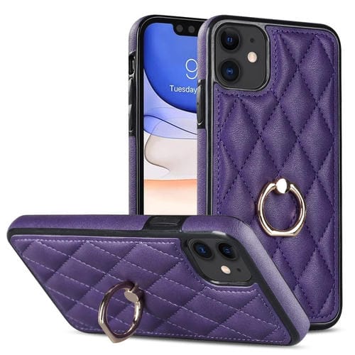 Funda para iPhone 11 Rhombic PU Cuero con Soporte para Anillo (Púrpura)