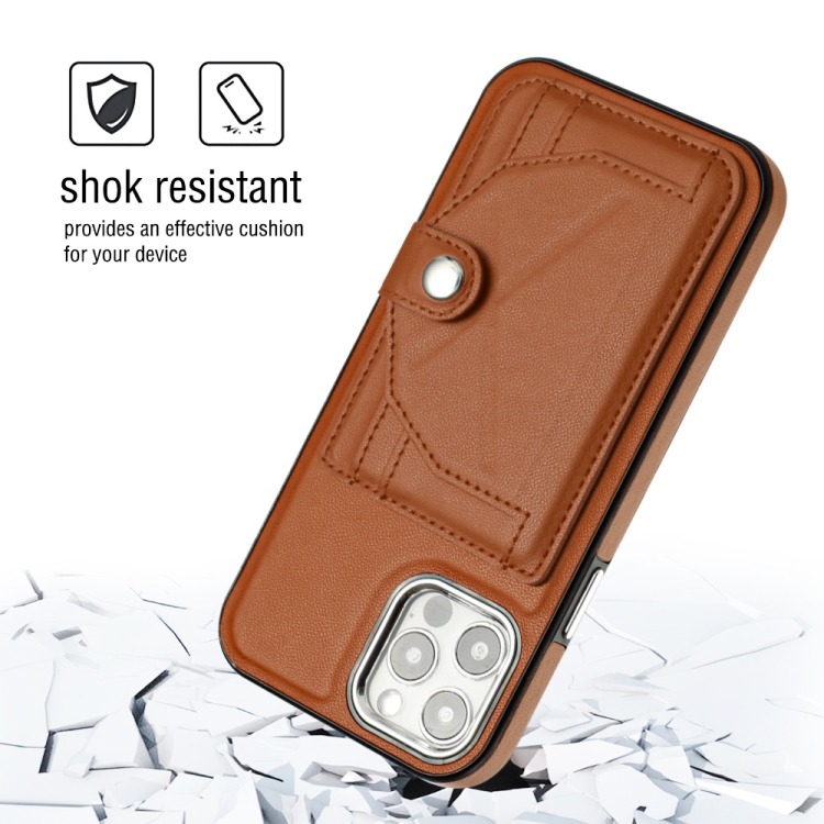 Funda para iPhone 12/12 Pro de Cuero a Prueba de Golpes con Tarjetero (Marrón)