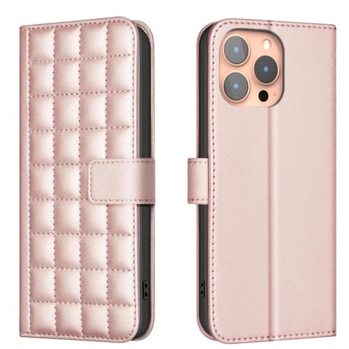 Funda de Cuero para iPhone 12/12 Pro con Textura Cuadrada (Oro Rosa)