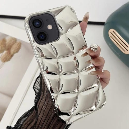 Caja de teléfono TPU para iPhone 12 con pintura metálica chapada en cuadros curvos (Plateado)