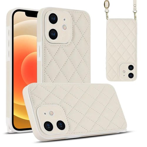 Estuche para Teléfono iPhone 12 Textura Rómbica Cordón Doble (Blanco)