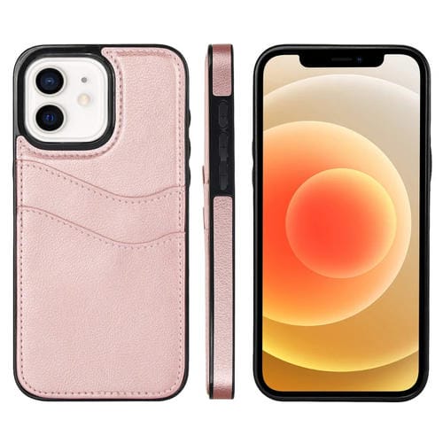 For iPhone 12 Phone Case with Card Slots Litchi Skin Leather (Rose Gold)