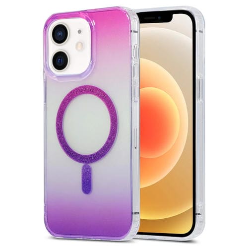 For iPhone 12 Magic Diamond Blu-ray MagSafe Phone Case (Purple Red Gradient)