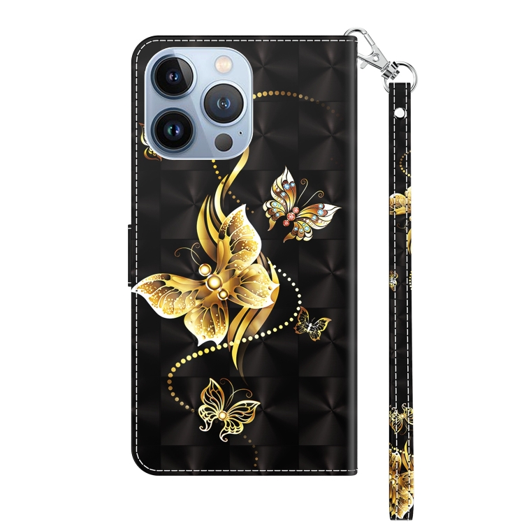 Funda de teléfono iPhone 12 Mini cuero pintado en 3D mariposa golondrina dorada