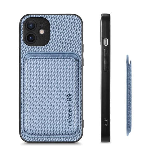 Funda para iPhone 12 Mini Tarjeta de Cuero Fibra de Carbono Magsafe Magnética (Azul)