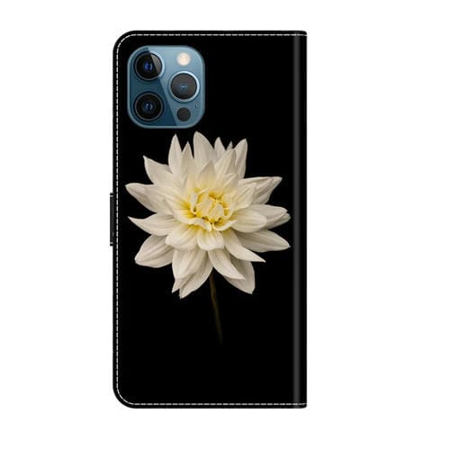 Funda Protectora de Cuero para iPhone 12 Pro Max y 13 Pro Max Crystal 3D a Prueba de Golpes (Flor Blanca)